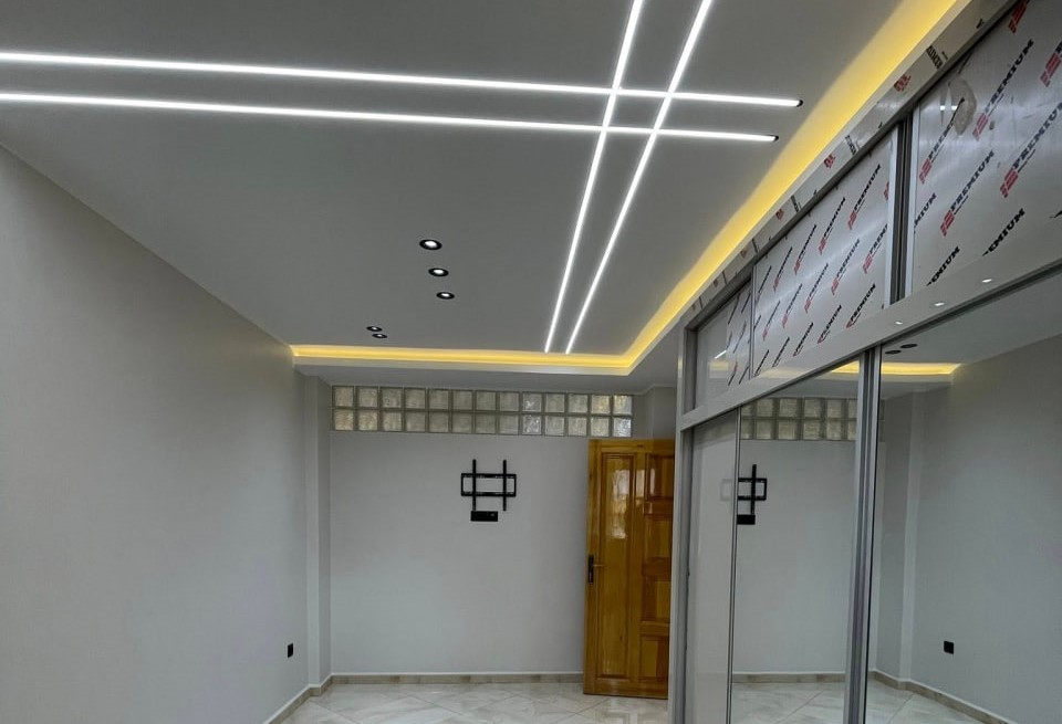 Travaux de placoplâtre: plafonds suspendus, habillage mural, cloisons intérieures, décoration TV, éclairage indirect et profils LED.